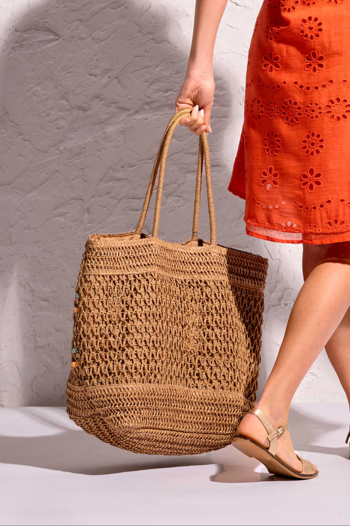 La bolsa de playa Jazmin en tonalidades naturales es perfecta para tus aventuras veraniegas gracias a su diseño amplio y versátil y al cierre con botón magnético. Con unas dimensiones de 48x37x21 cm, esta bolsa es ideal para looks veraniegos casuales y prácticos.