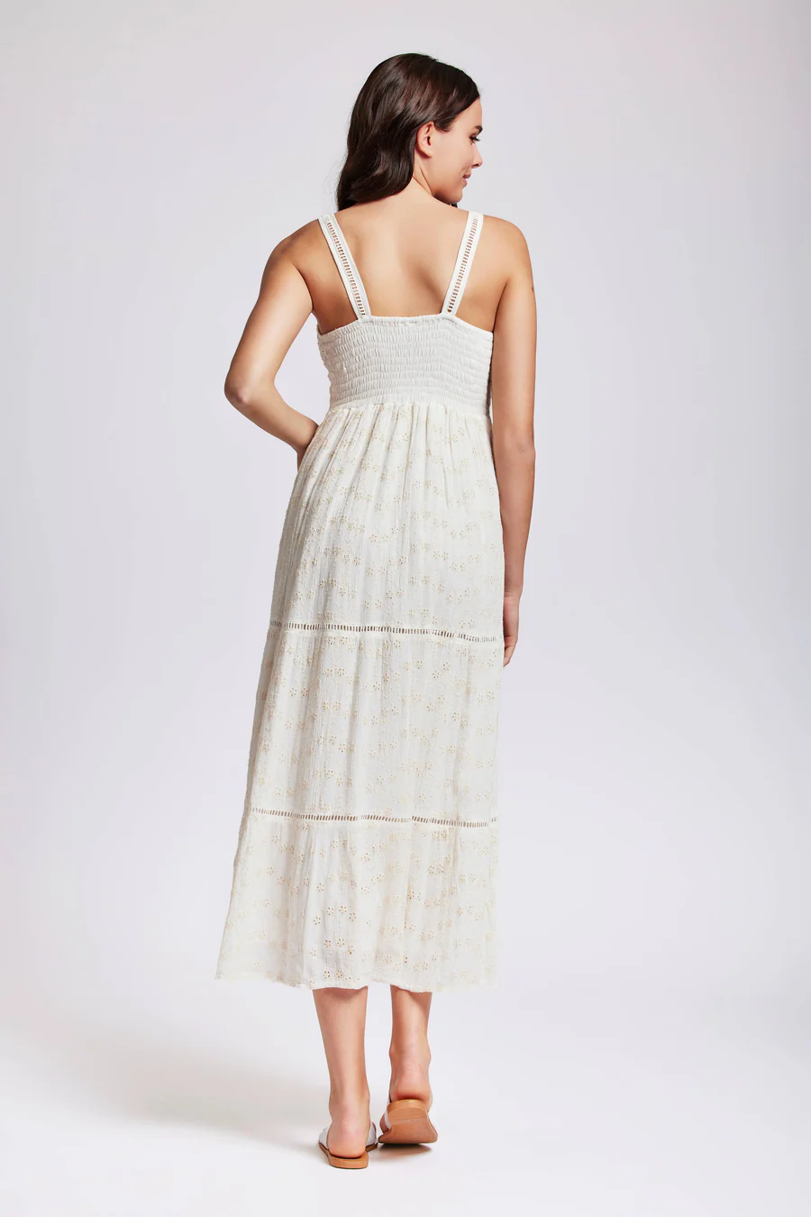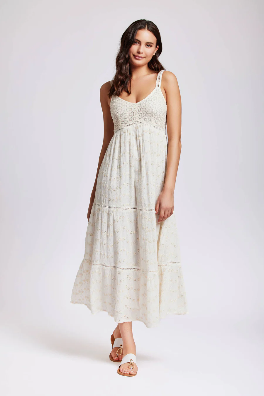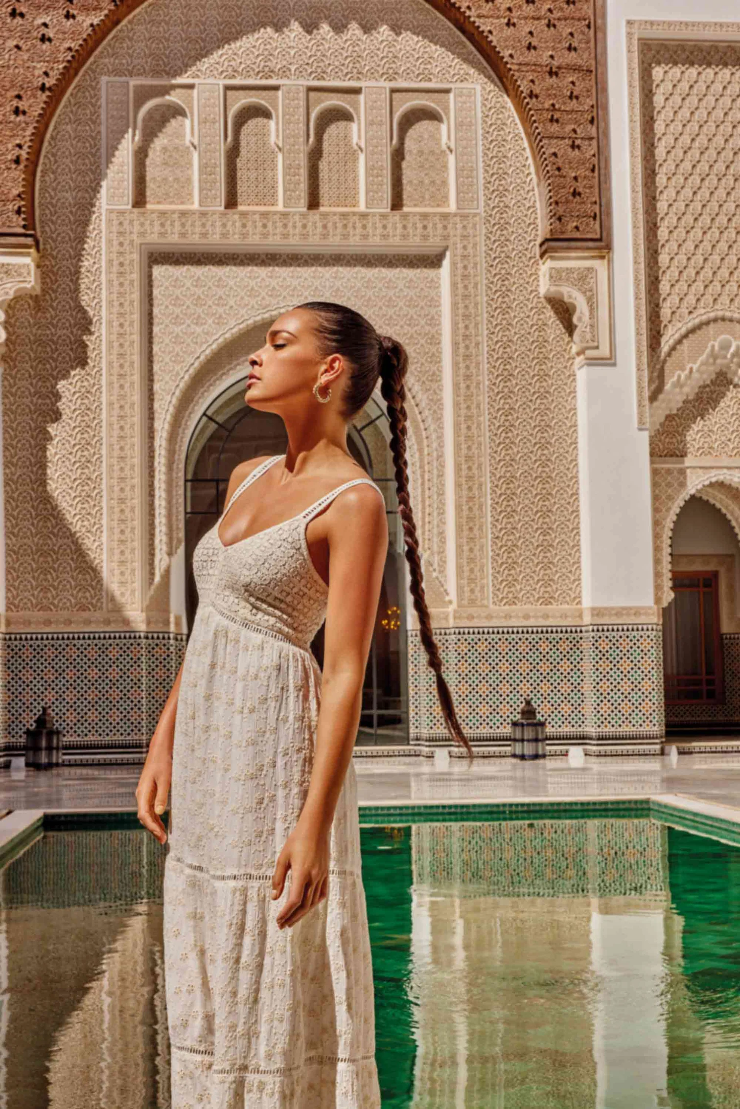 El vestido largo de encaje Lia está confeccionado con elegantes inserciones de encaje y detalles de encaje en la falda amplia. El diseño presenta un cuerpo entallado con spalline y cintura ajustada que resalta la figura femenina. Perfecto para eventos especiales, añade un toque de sofisticación a tu armario.